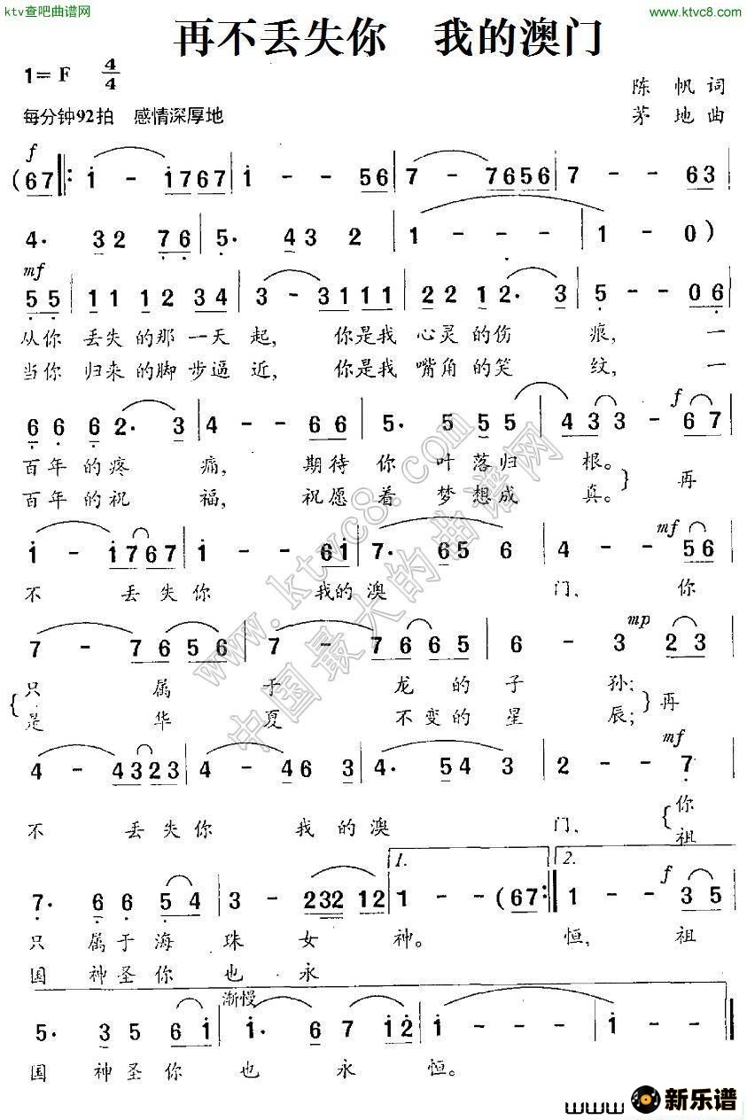演唱的再不丢失你我的澳门歌词,再不丢失你我的澳门简谱.