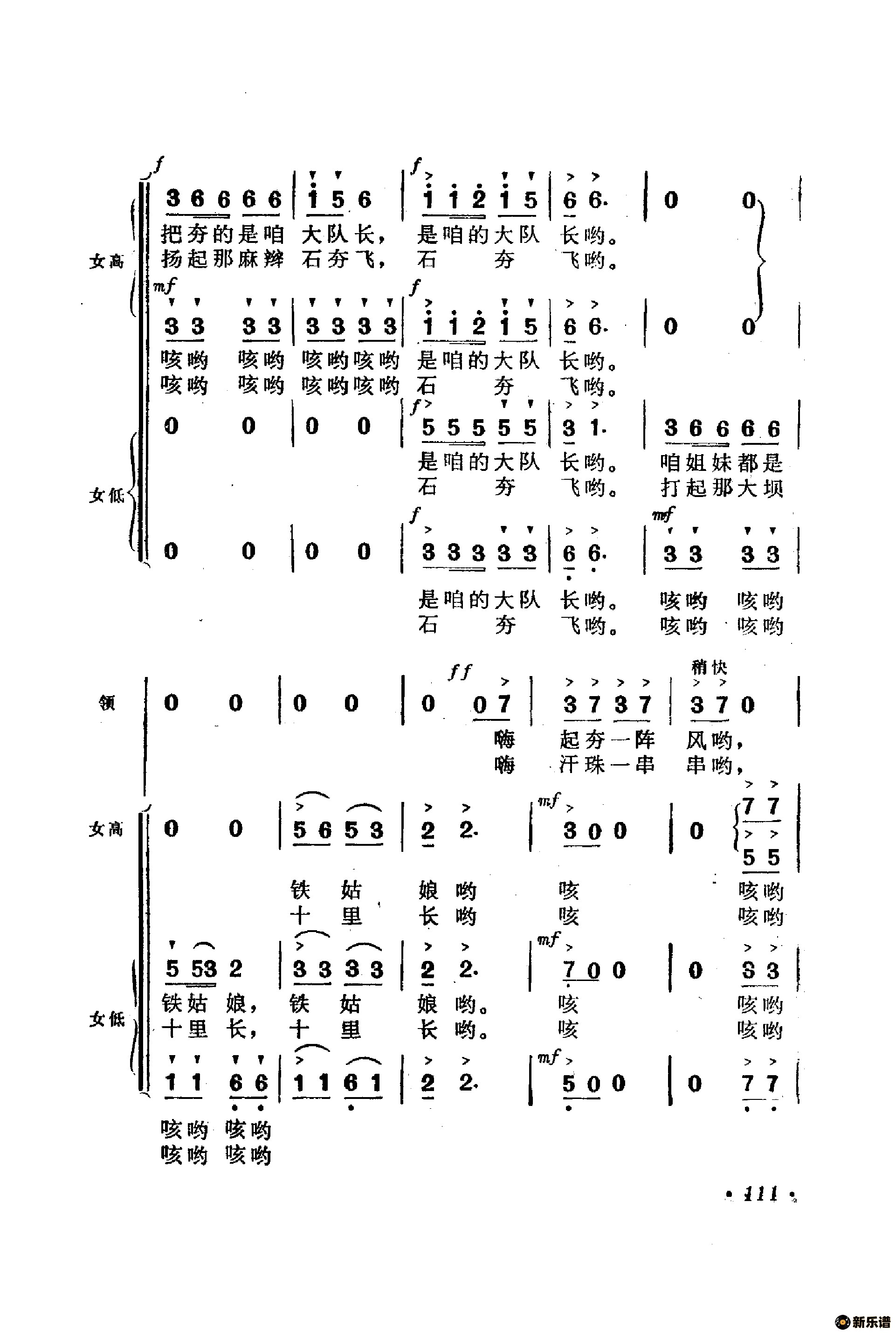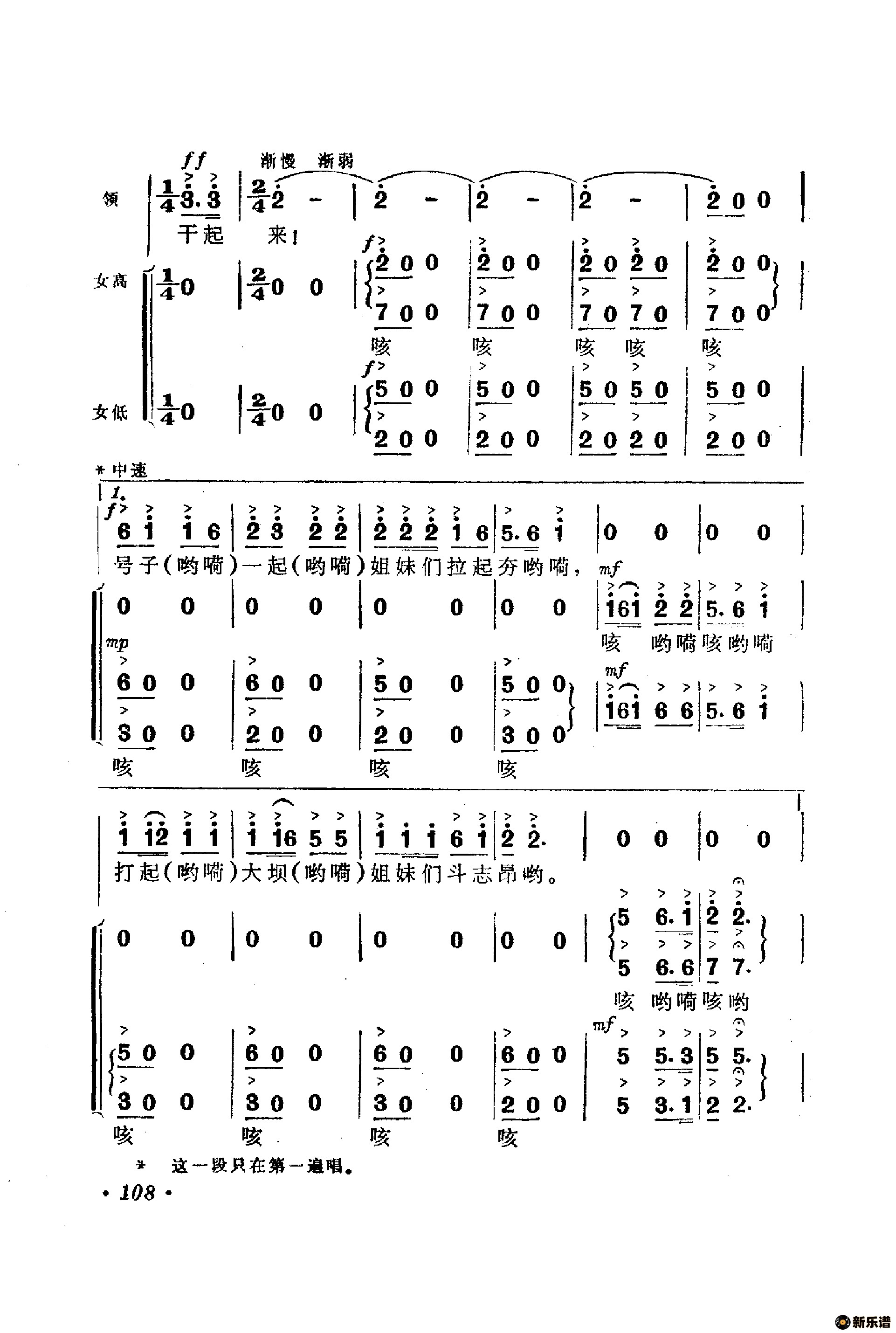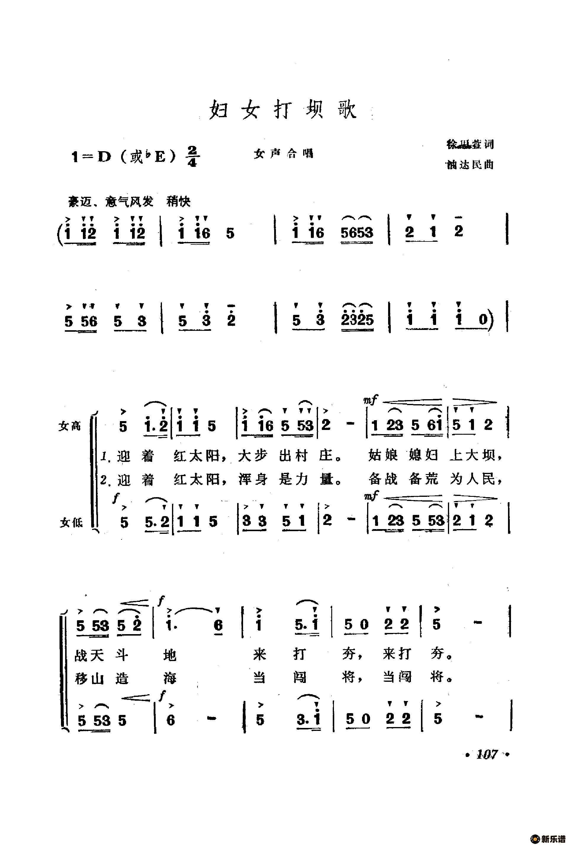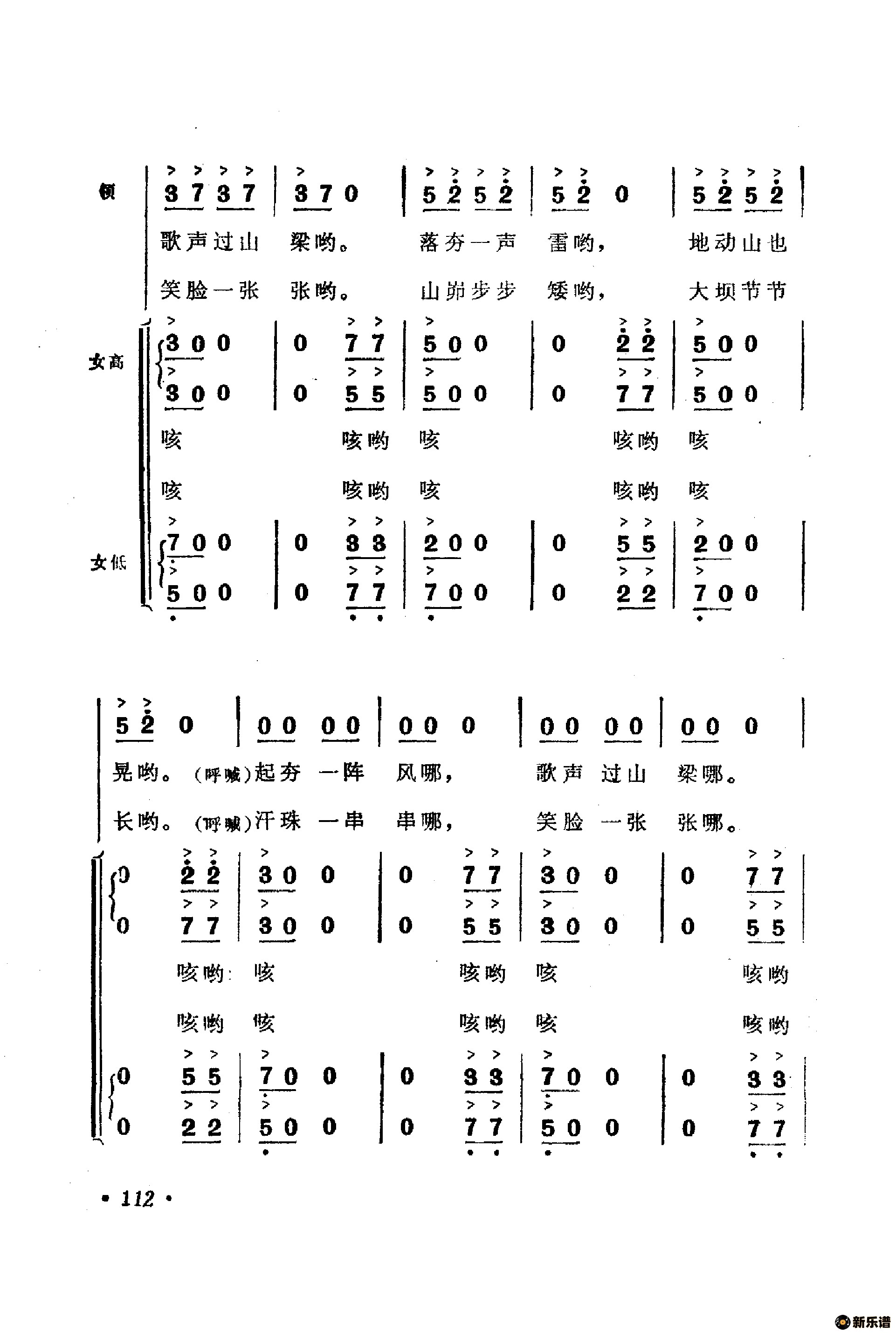 《妇女打坝歌》简谱 陕西歌舞剧院麦芝颜领唱