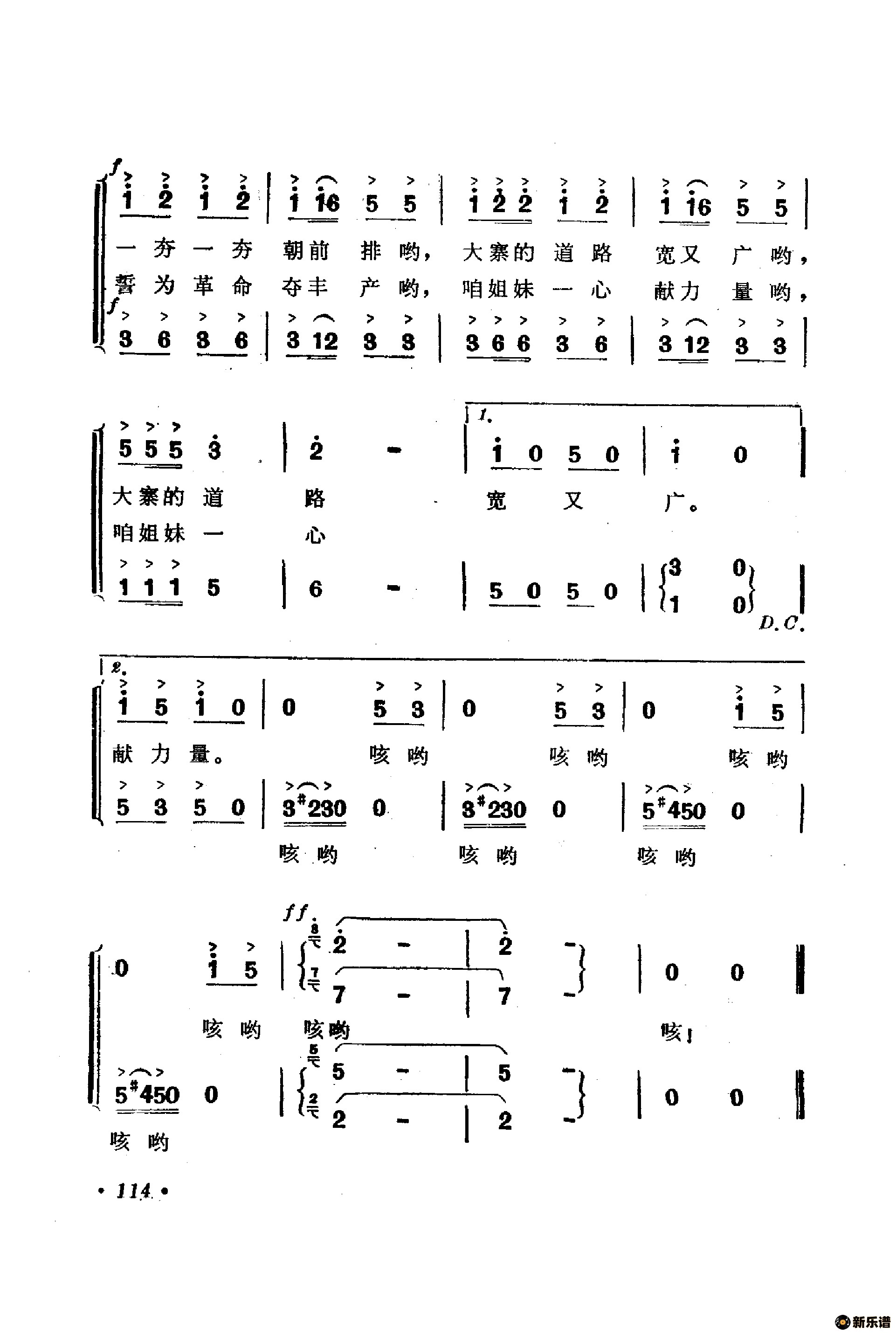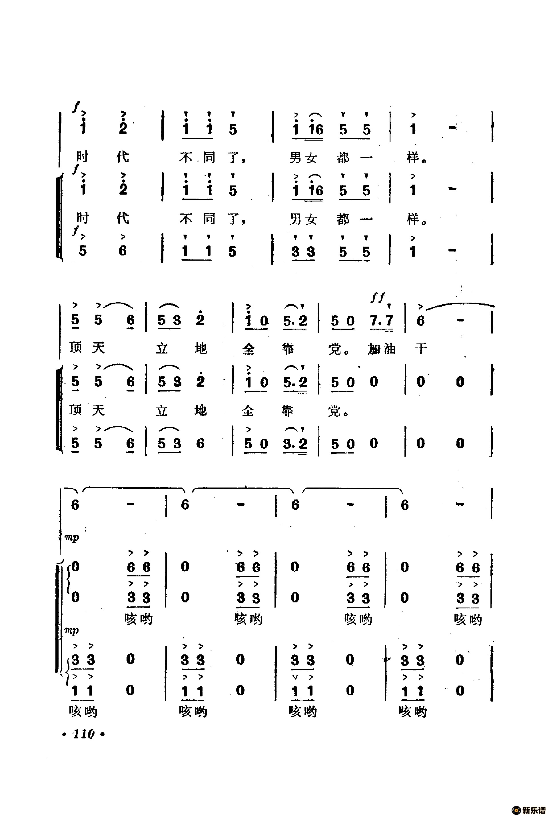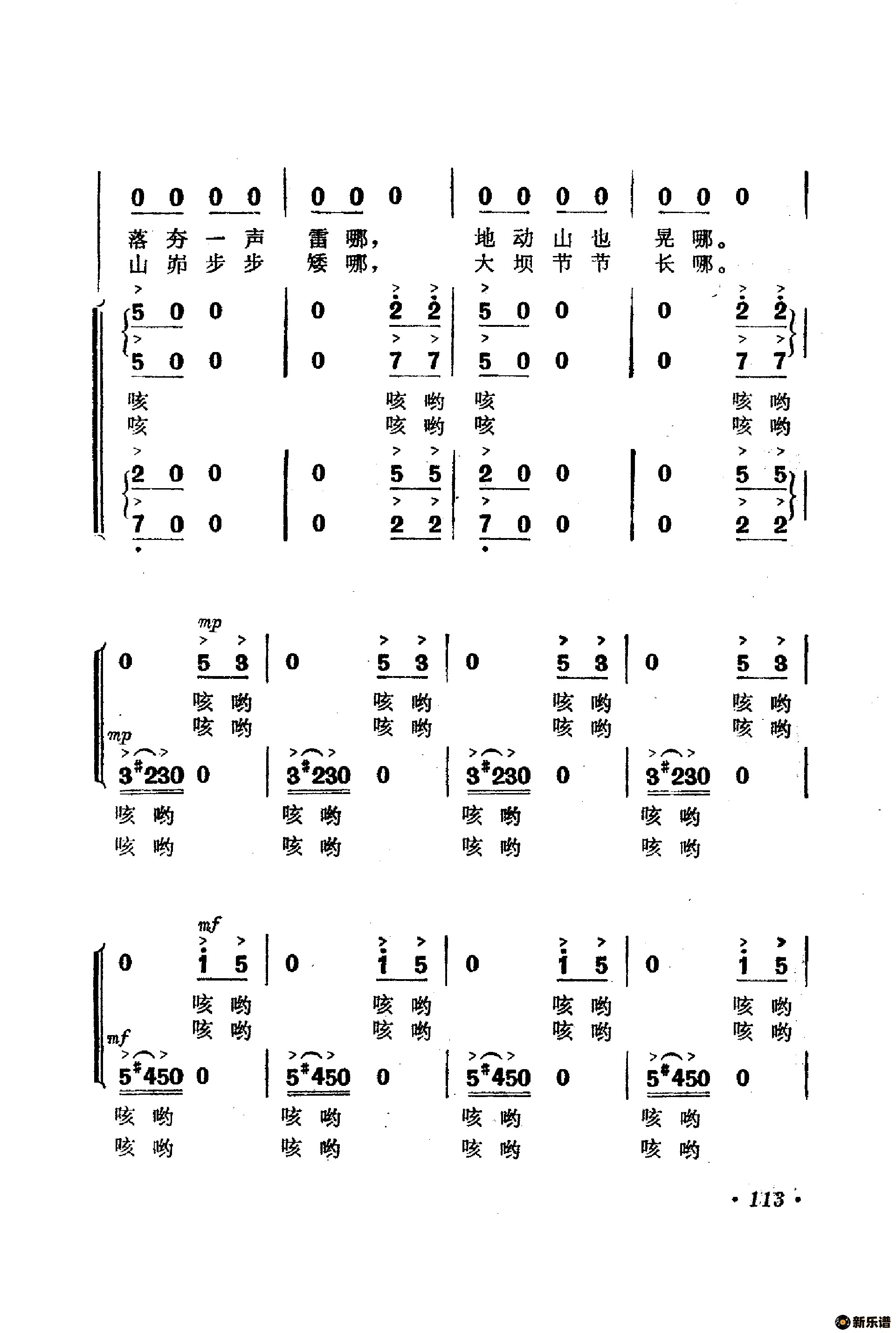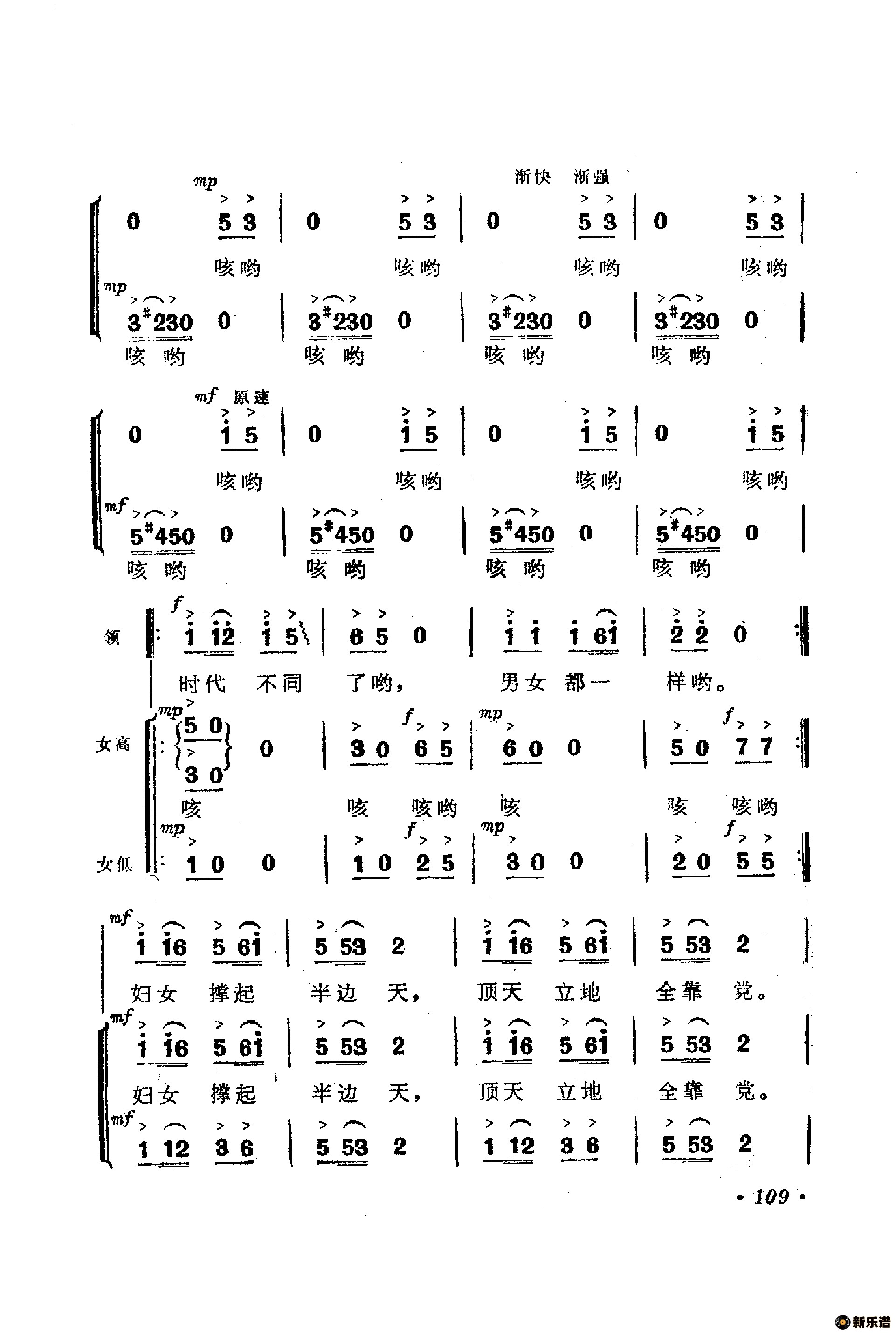 《妇女打坝歌》简谱 陕西歌舞剧院麦芝颜领唱