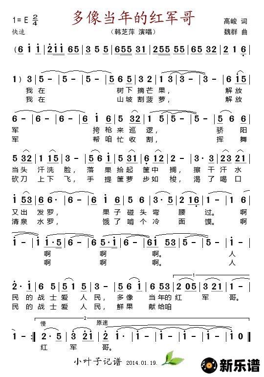 《多像当年的红军哥》简谱 韩芝萍-小叶子制谱