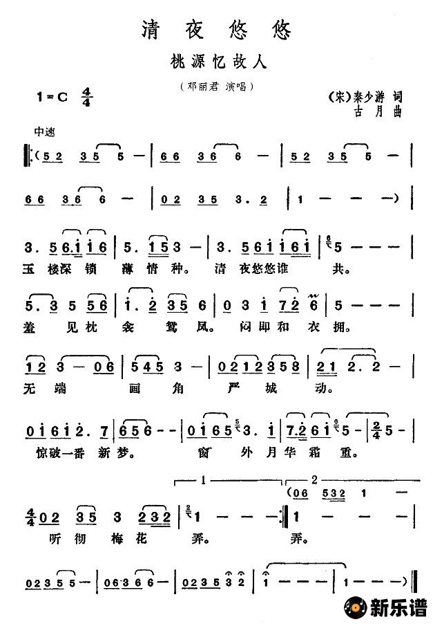 邓丽君演唱的清夜悠悠歌词,清夜悠悠简谱.