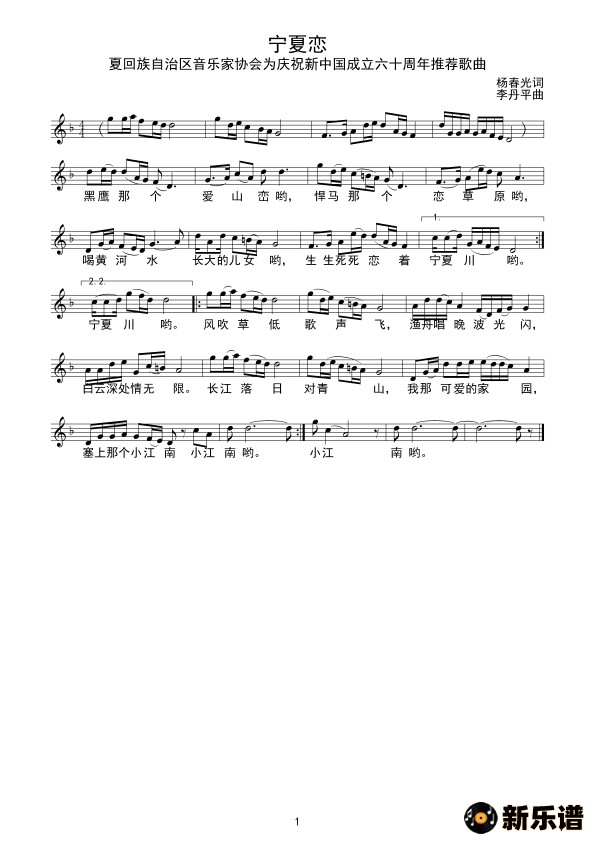 演唱的宁夏恋(线谱)歌词,宁夏恋(线谱)简谱.