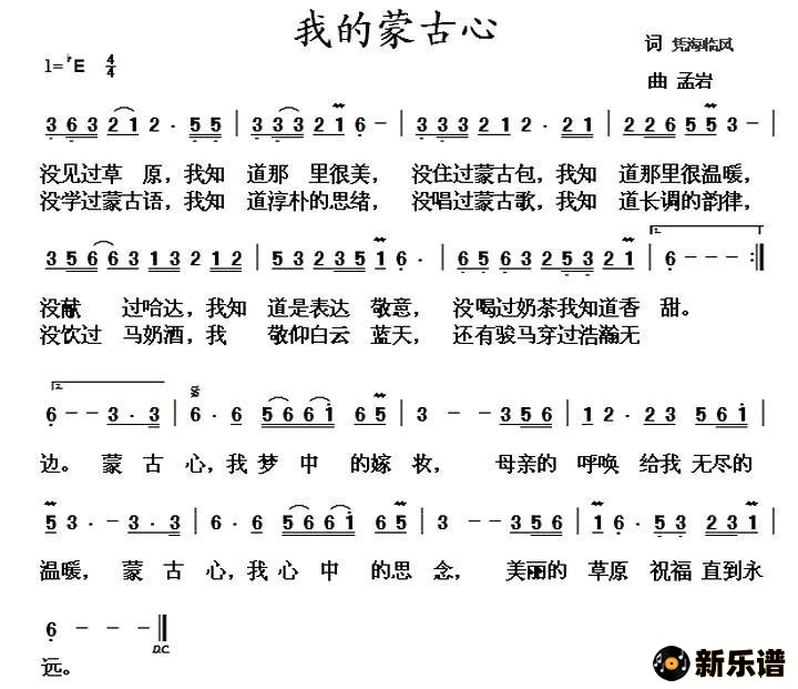 演唱的我的蒙古心歌词,我的蒙古心简谱.