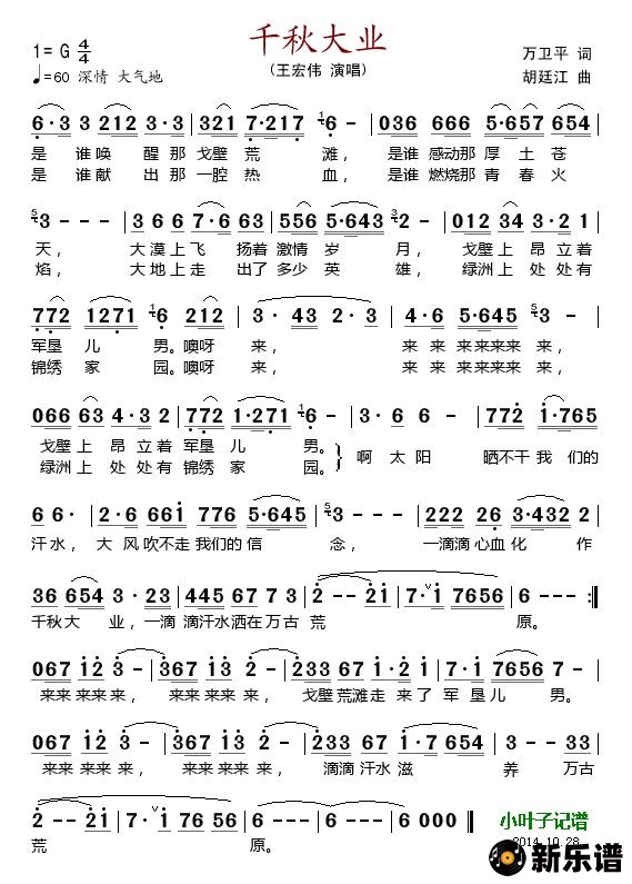 《千秋大业》简谱 王宏伟-小叶子制谱