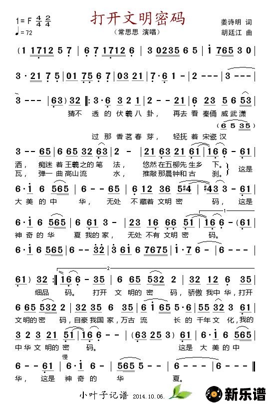 常思思演唱的打开文明密码歌词,打开文明密码简谱.