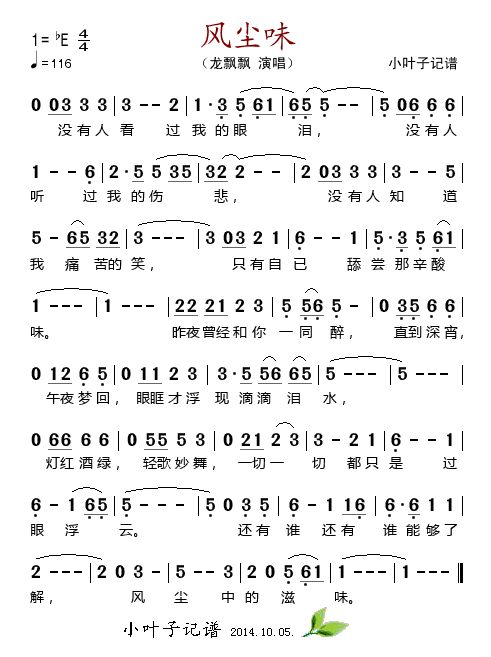 《风尘味》简谱 龙飘飘-小叶子制谱
