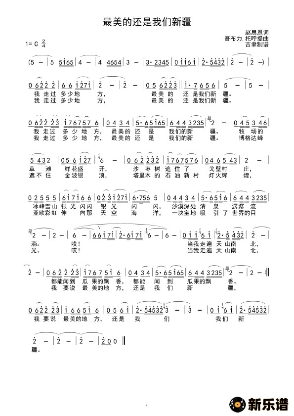 演唱的最美的还是我们的新疆歌词,最美的还是我们的新疆简谱.