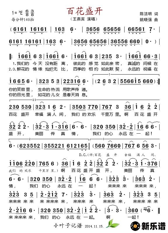 《百花盛开》简谱 王燕宾-小叶子制谱