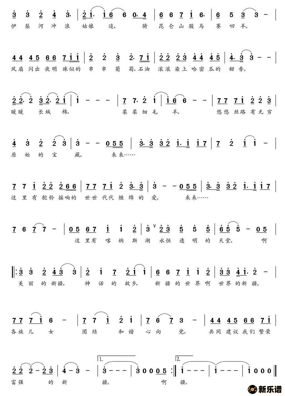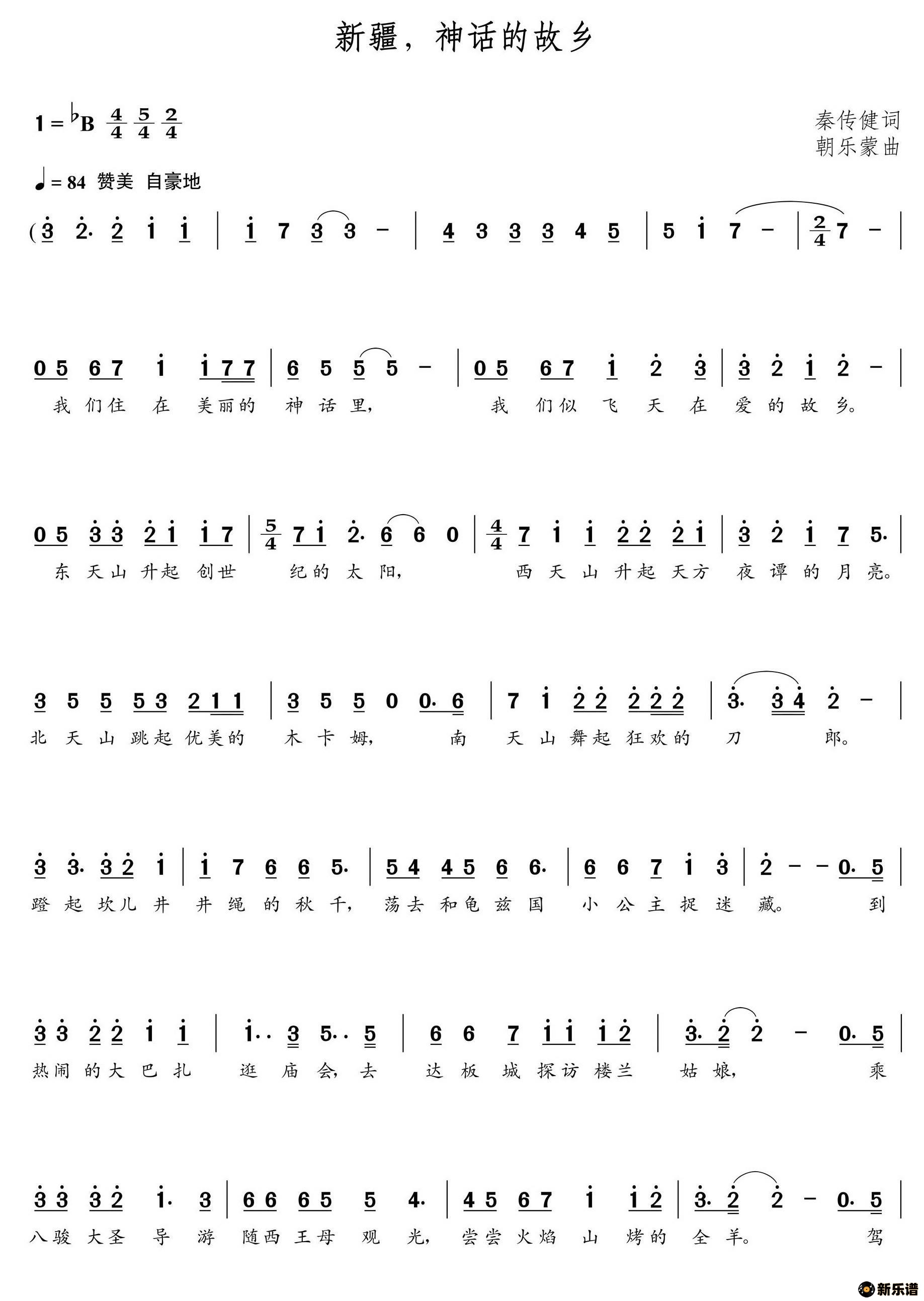 演唱的新疆,神话的故乡(朝乐蒙曲)歌词,新疆,神话的故乡(朝乐蒙曲)简谱.