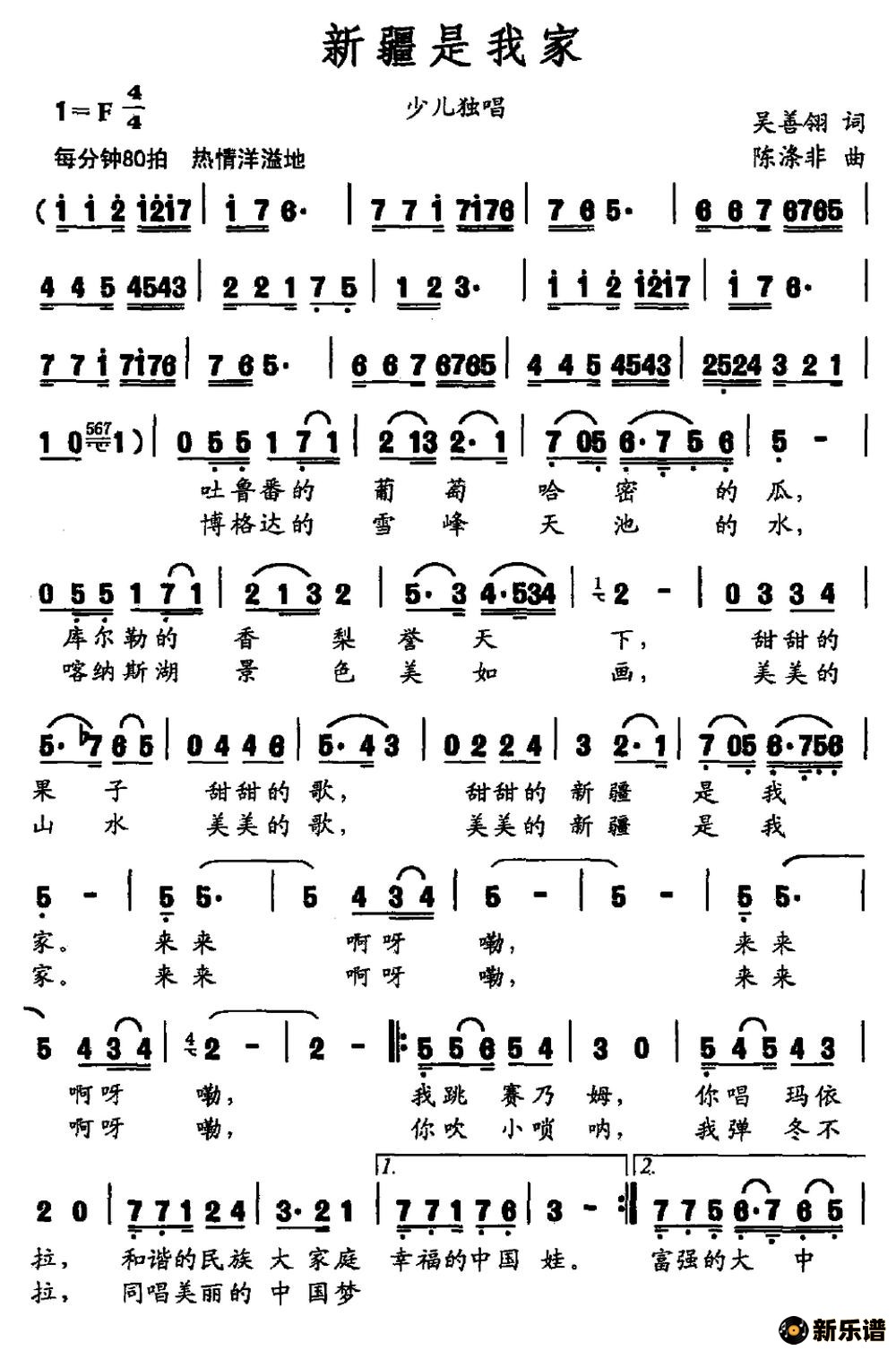 演唱的新疆是我家歌词,新疆是我家简谱.