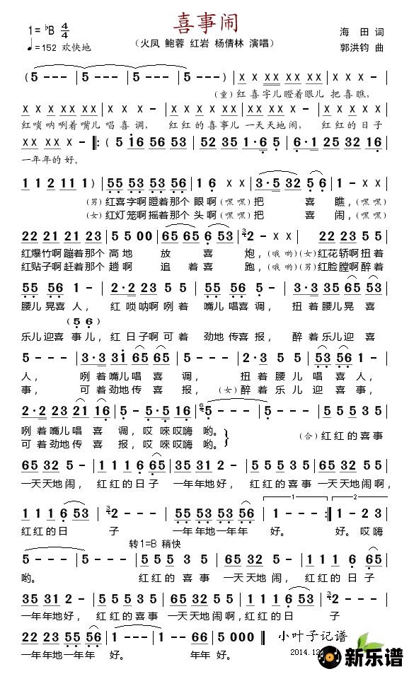 《喜事闹》简谱 火凤鲍蓉红岩杨倩林-小叶子制谱
