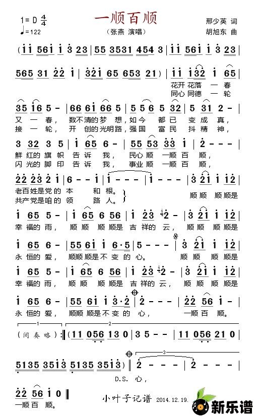 张燕演唱的一顺百顺歌词,一顺百顺简谱.