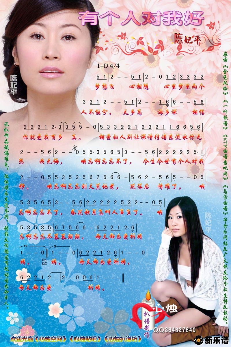 陈妃平演唱的有个人对我好歌词,有个人对我好简谱.