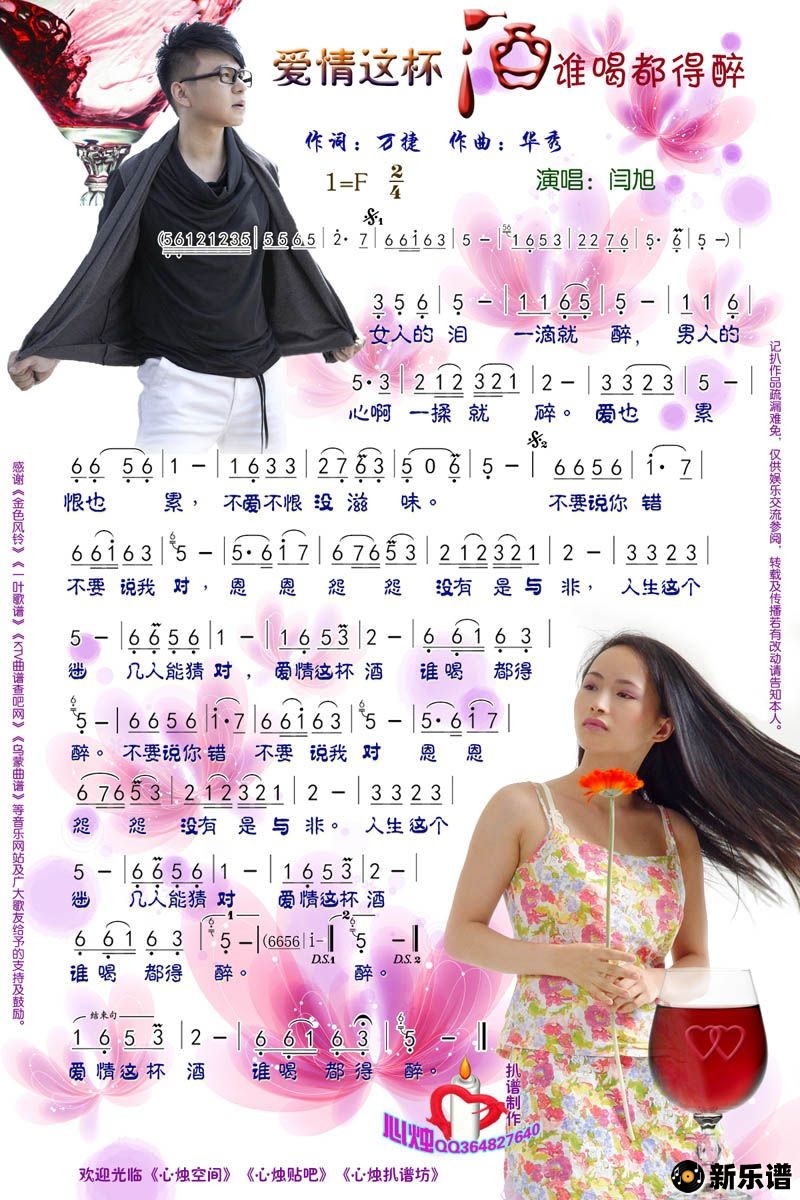 闫旭演唱的爱情这杯酒谁喝都得醉歌词,爱情这杯酒谁喝都得醉简谱.