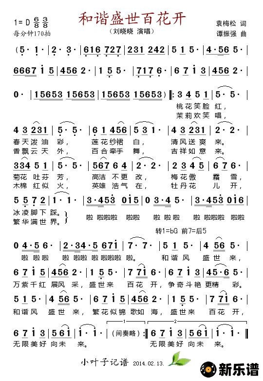 《和谐盛世百花开》简谱 刘晓晓-小叶子制谱