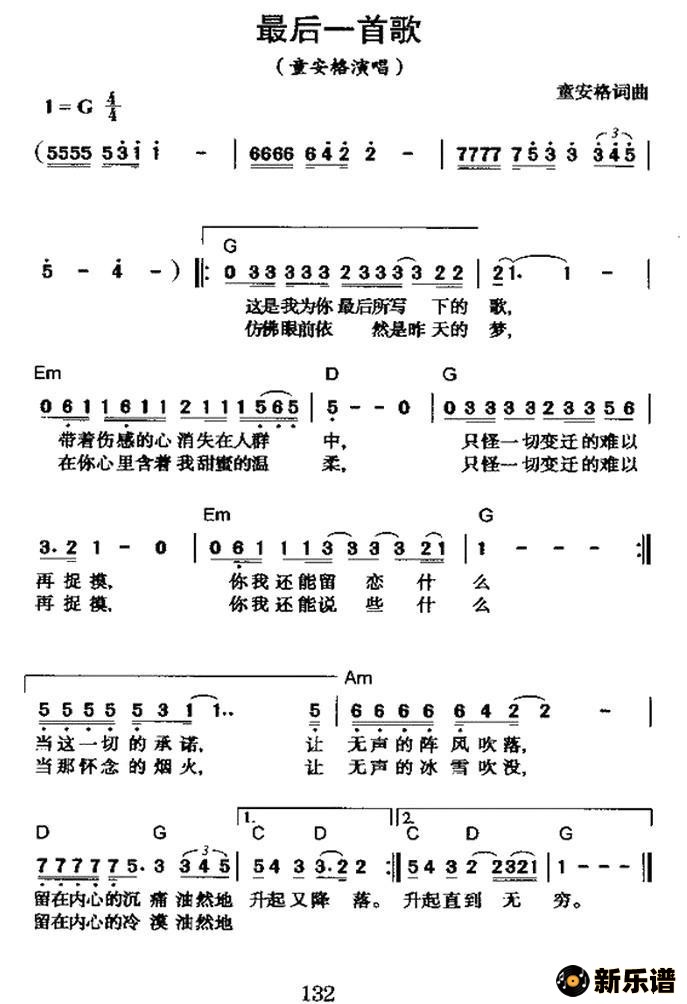 最后一首歌(童安格 词曲)/童安格 相关曲谱