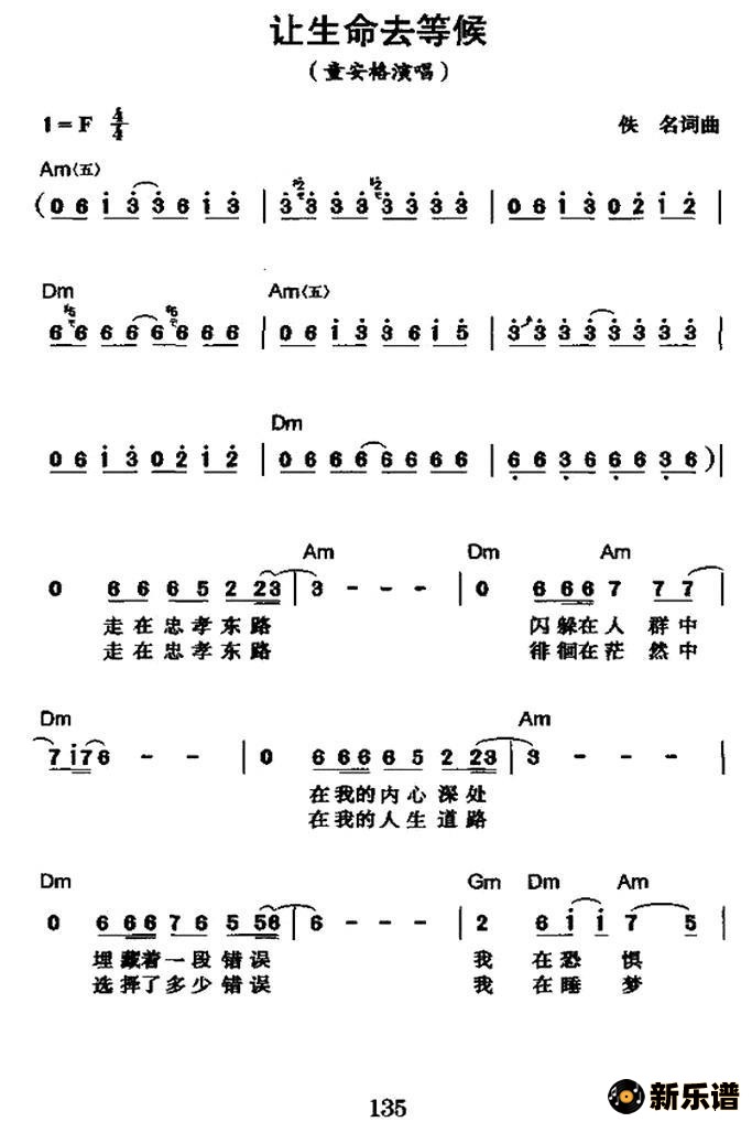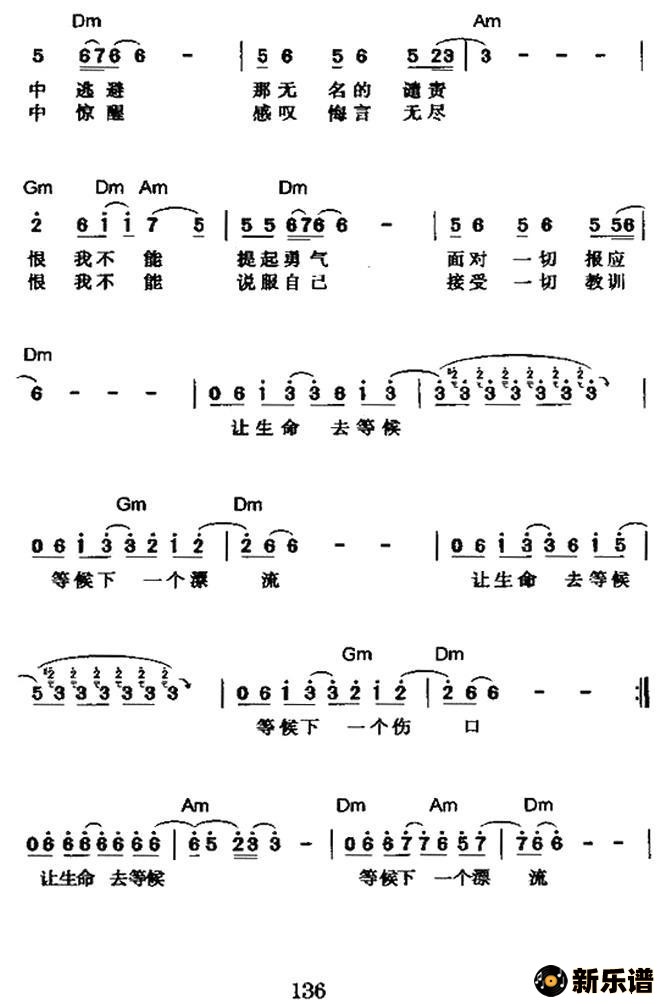 童安格演唱的让生命去等待歌词,让生命去等待简谱.