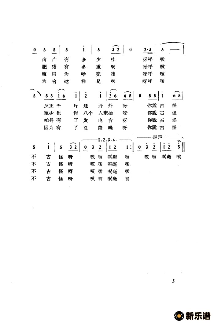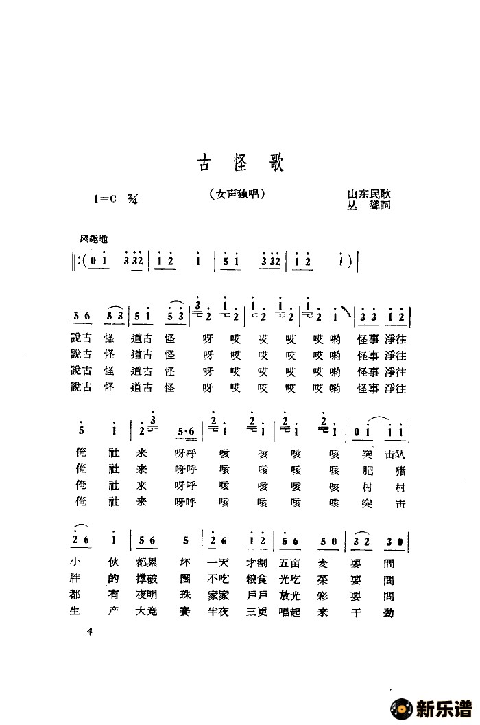 演唱的古怪歌(山东民歌)歌词,古怪歌(山东民歌)简谱.