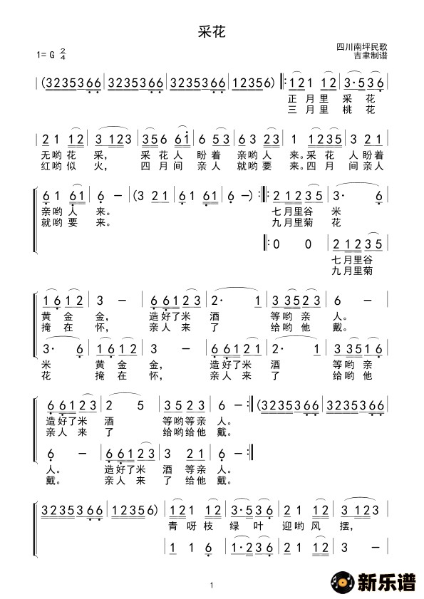 演唱的采花(四川南坪民歌)歌词,采花(四川南坪民歌)简谱.
