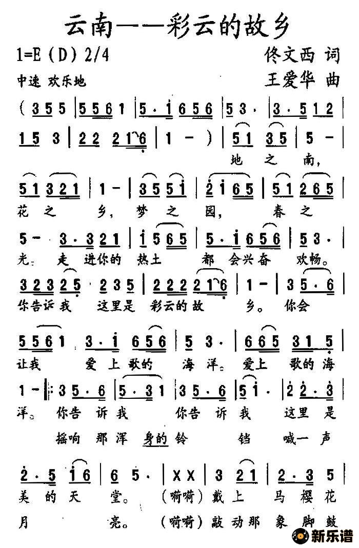 演唱的云南—彩云的故乡歌词,云南—彩云的故乡简谱.