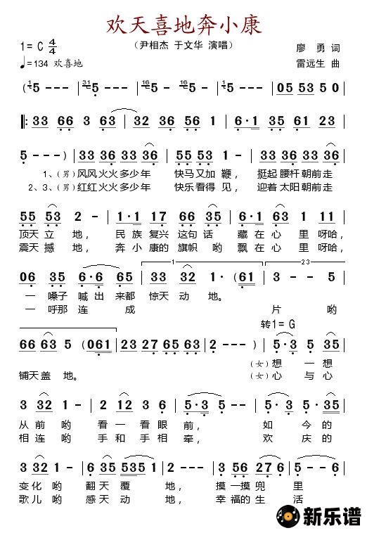尹相杰/于文华演唱的欢天喜地奔小康歌词,欢天喜地奔小康简谱.