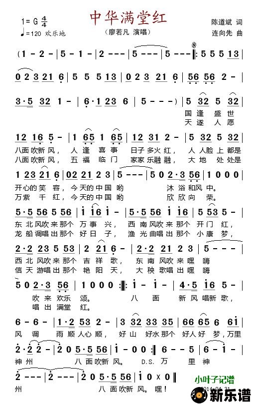 《中华满堂红》简谱 廖若凡-小叶子制谱