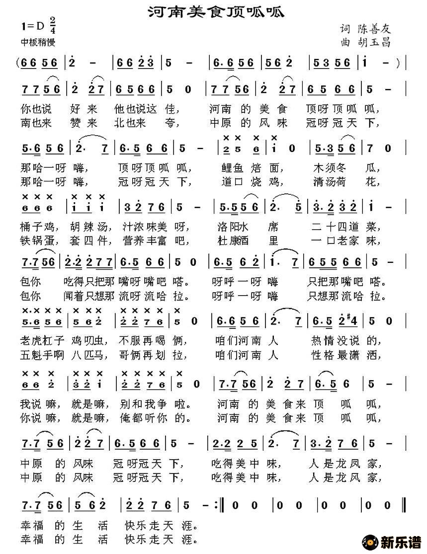 演唱的河南美食顶呱呱歌词,河南美食顶呱呱简谱.