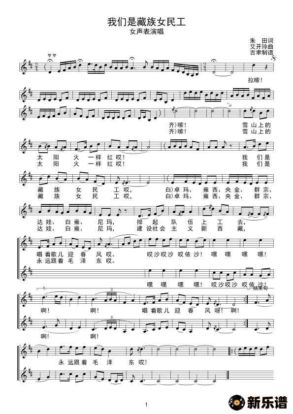 演唱的我们是藏族女民工(线谱)歌词,我们是藏族女民工(线谱)简谱.