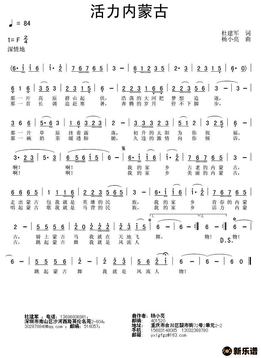 演唱的活力内蒙古歌词,活力内蒙古简谱.