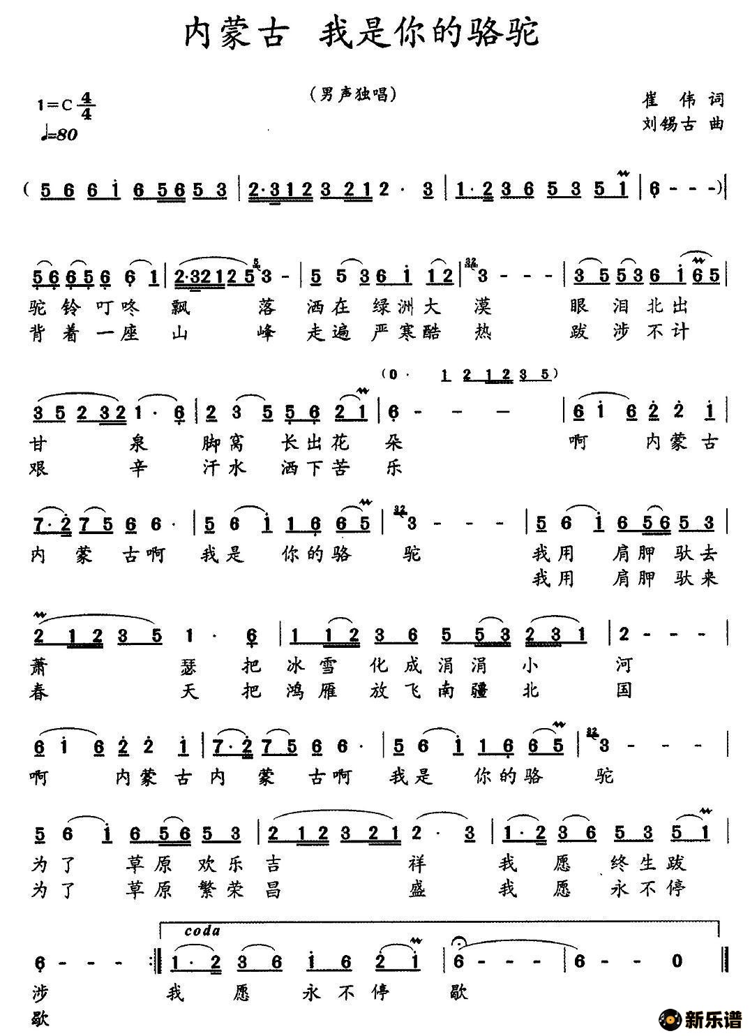 演唱的内蒙古 我是你的骆驼歌词,内蒙古 我是你的骆驼简谱.