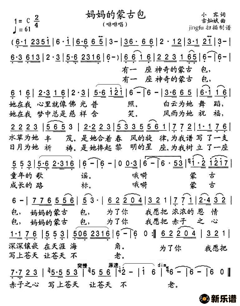 啡啡演唱的妈妈的蒙古包(啡啡版)歌词,妈妈的蒙古包(啡啡版)简谱.