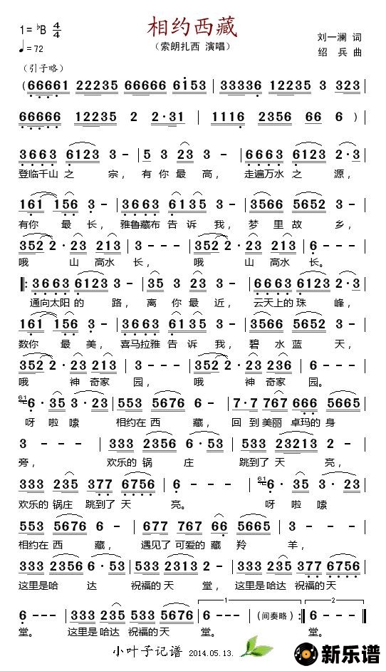 《相约西藏》简谱 索朗扎西-小叶子制谱