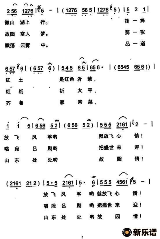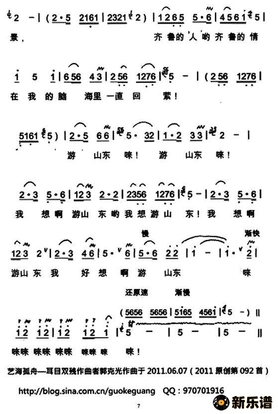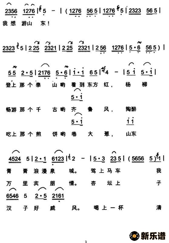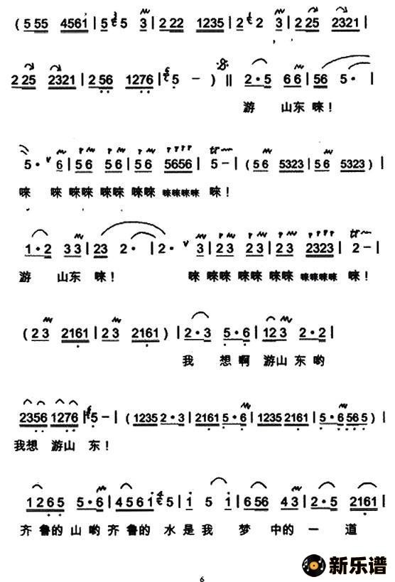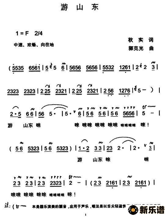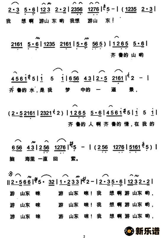 演唱的游山东歌词,游山东简谱.