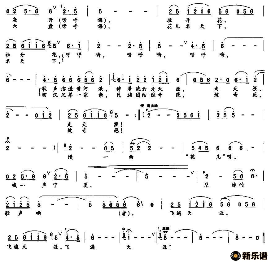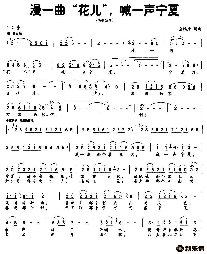 演唱的漫一曲“花儿”,喊一声宁夏歌词,漫一曲“花儿”,喊一声宁夏简谱.