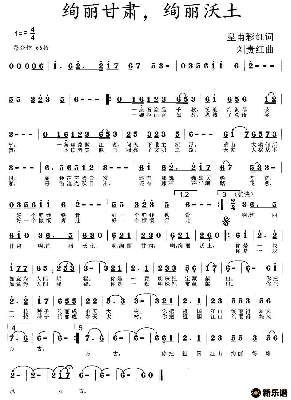 > 绚丽甘肃,绚丽沃土简谱