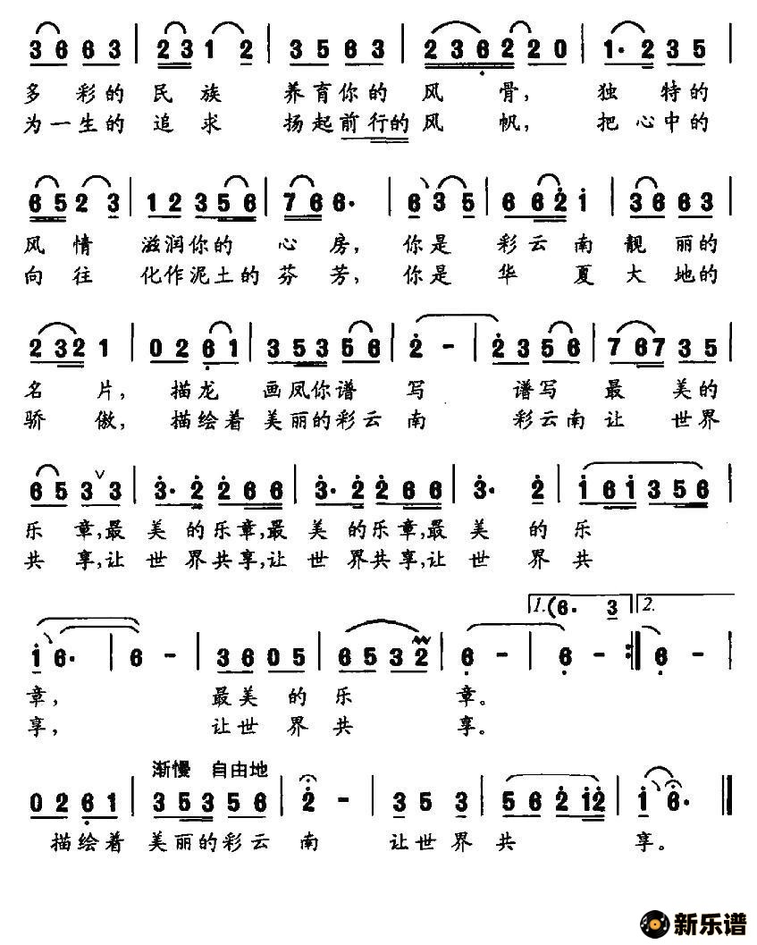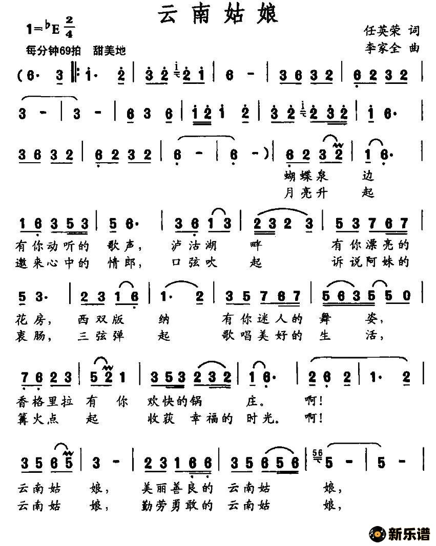 云南姑娘最新曲谱