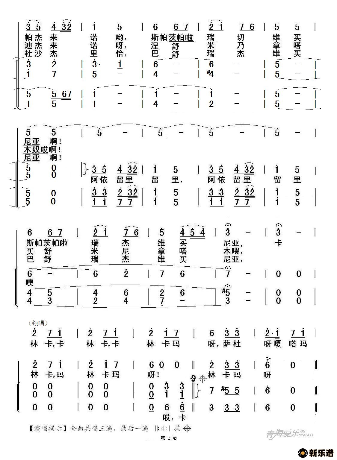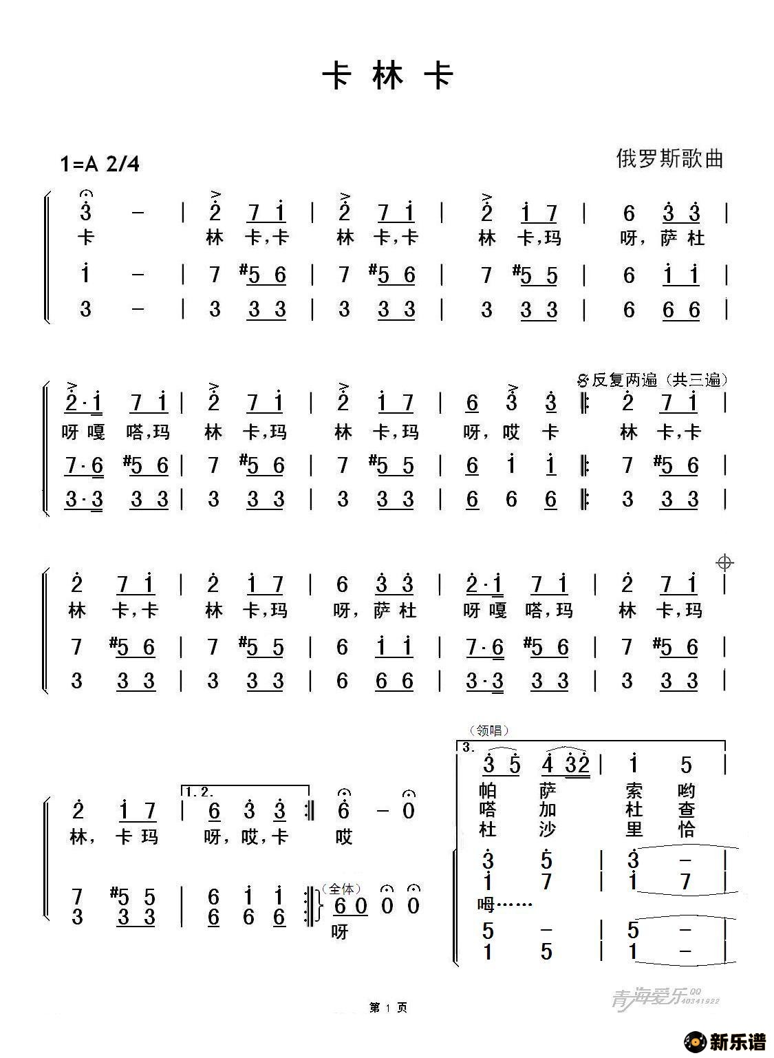 青海爱乐合唱团演唱的卡林卡歌词,卡林卡简谱.