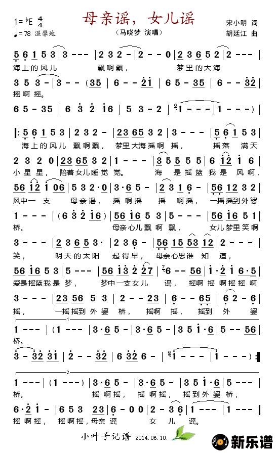 《母亲谣,女儿谣》简谱 马晓梦-小叶子制谱