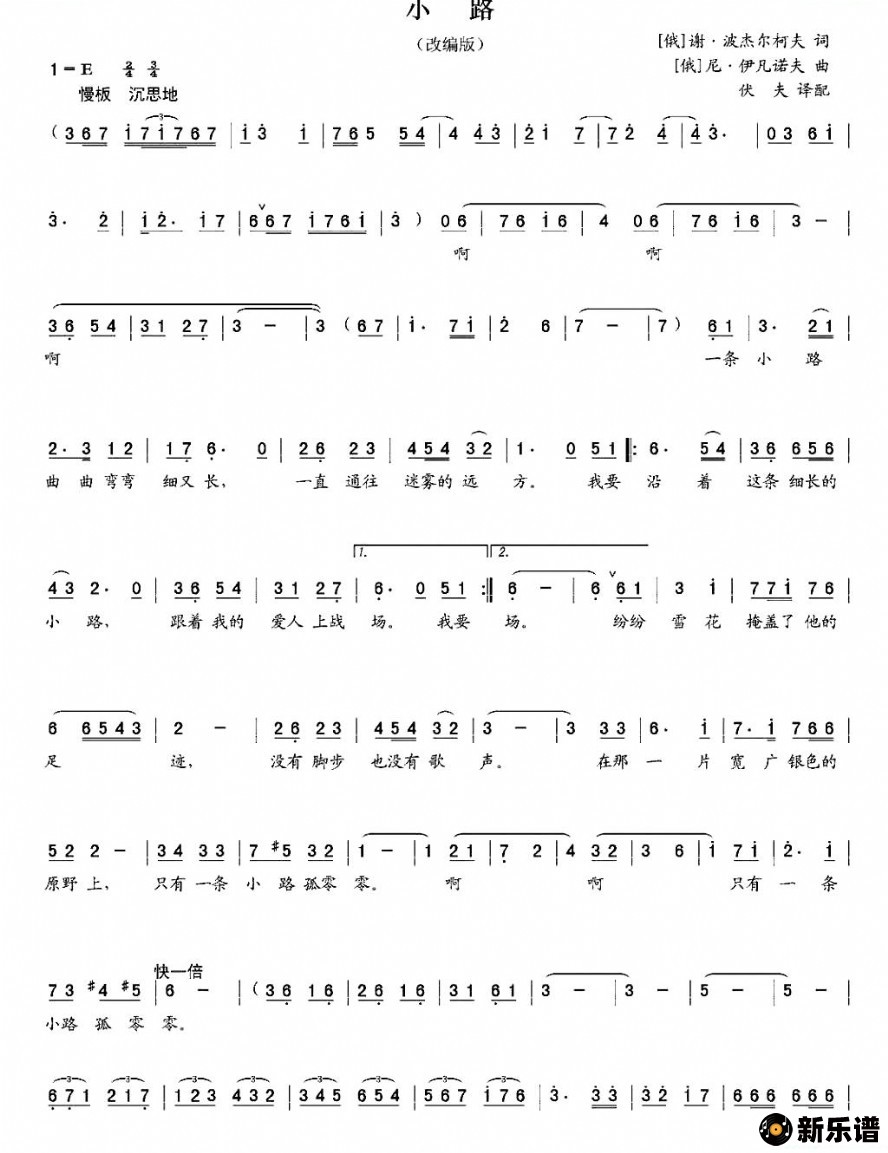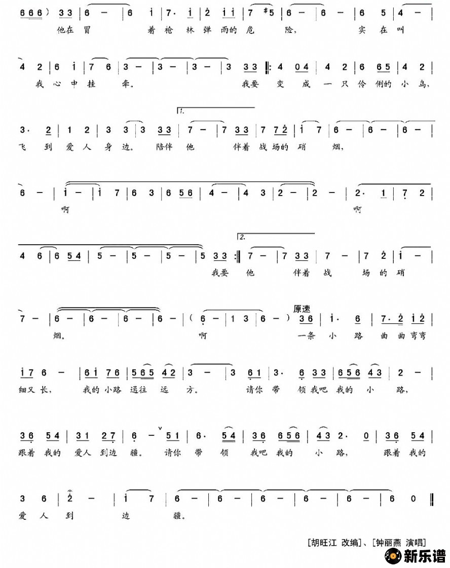 《小路(胡廷江改编版)》简谱 钟丽燕-小叶子制谱