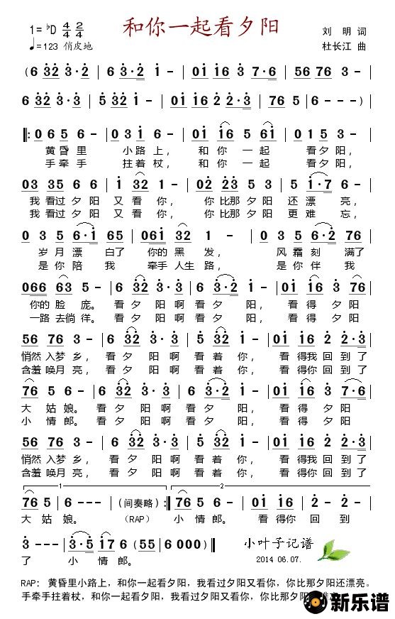 演唱的和你一起看夕阳歌词,和你一起看夕阳简谱.