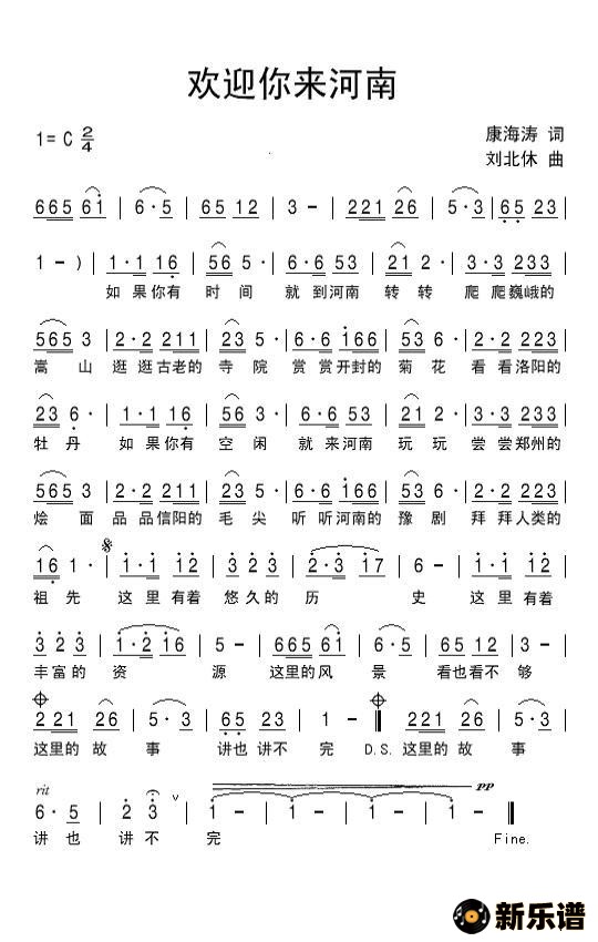 演唱的欢迎你来河南歌词,欢迎你来河南简谱.