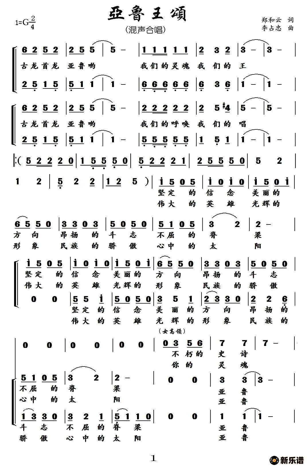 贵州省歌舞团合唱队演唱的亚鲁王颂歌词,亚鲁王颂简谱.