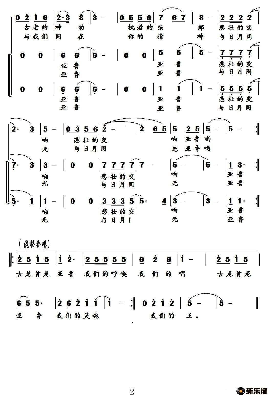 《亚鲁王颂》简谱 贵州省歌舞团合唱队