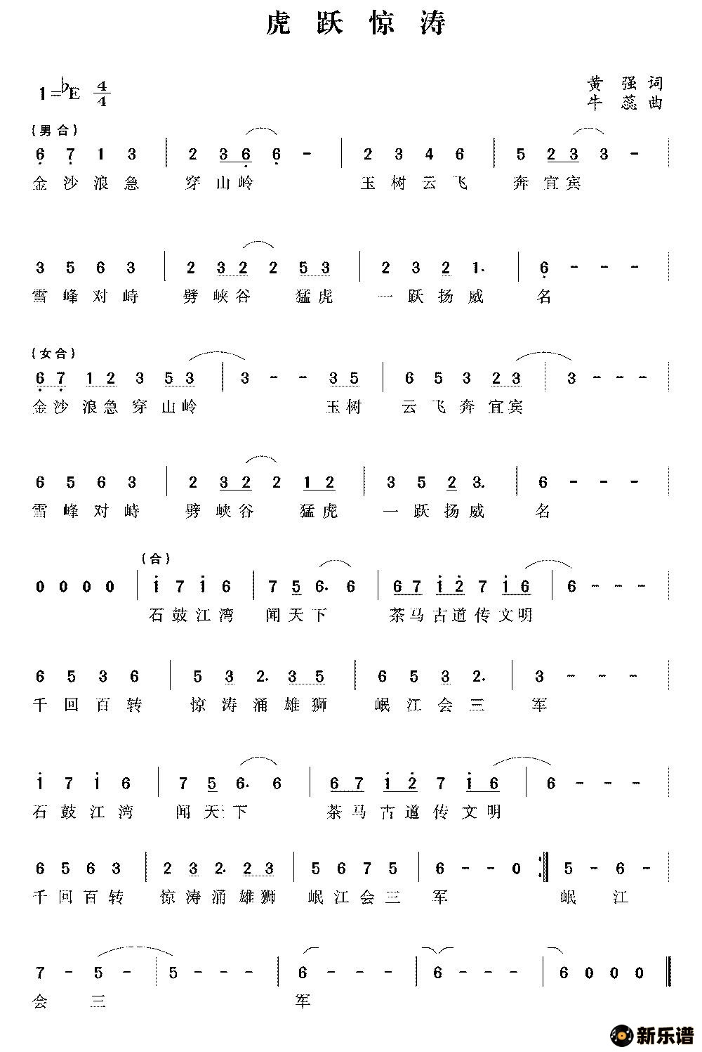 《虎跃惊涛》简谱 湖北演艺集团歌剧团
