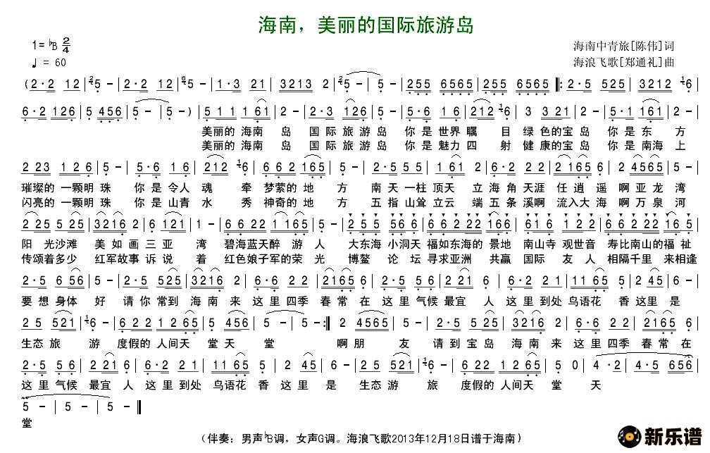 演唱的海南,美丽的国际旅游岛歌词,海南,美丽的国际旅游岛简谱.