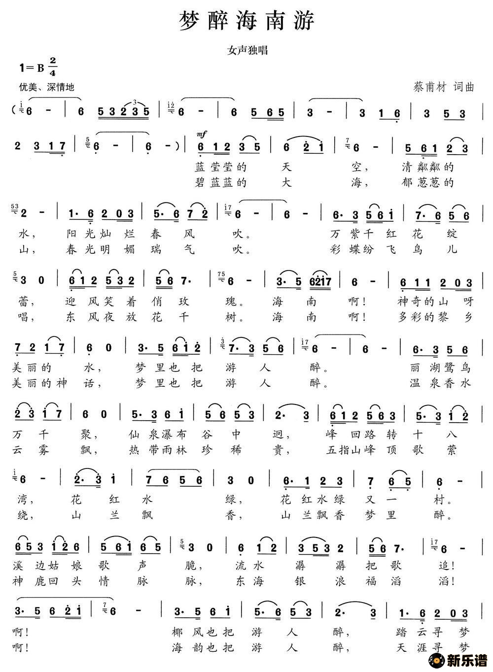 演唱的梦醉海南游歌词,梦醉海南游简谱.