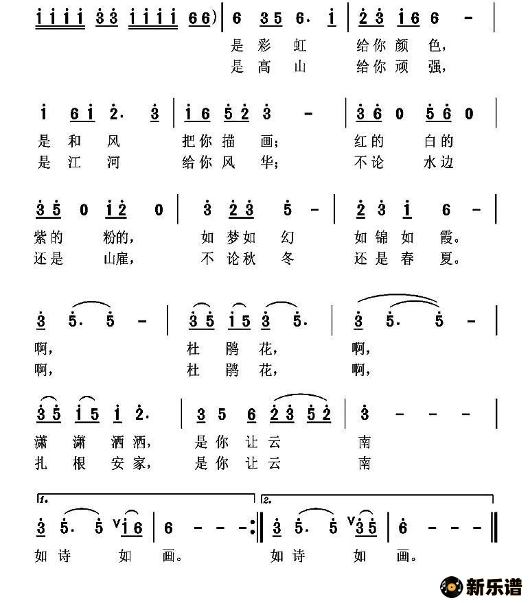 《云南杜鹃花》简谱