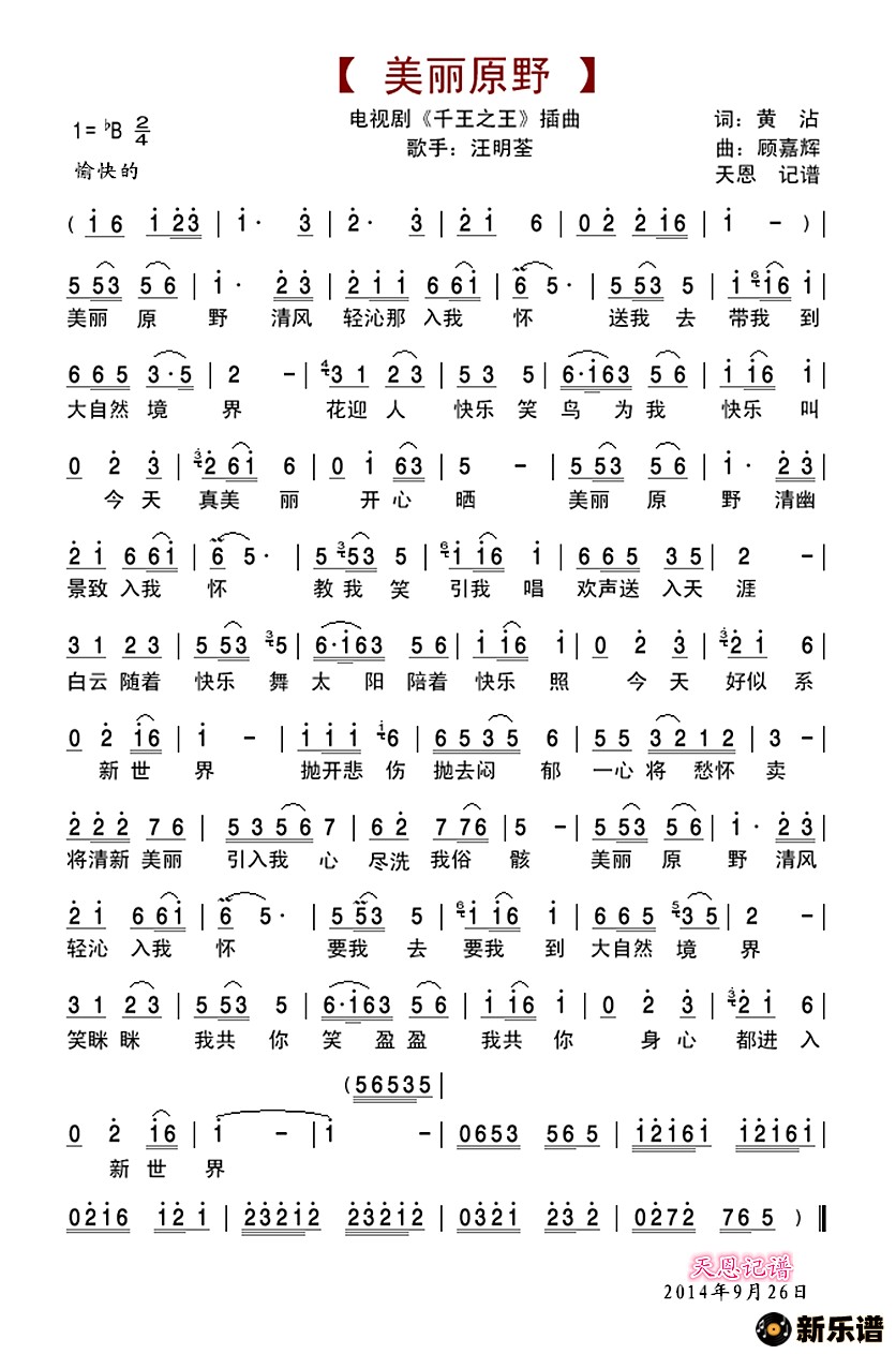 > 美丽原野-电视剧《千王之王》插曲简谱