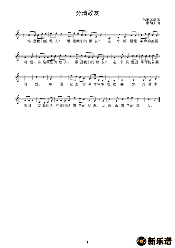 演唱的分清敌友(线谱)歌词,分清敌友(线谱)简谱.