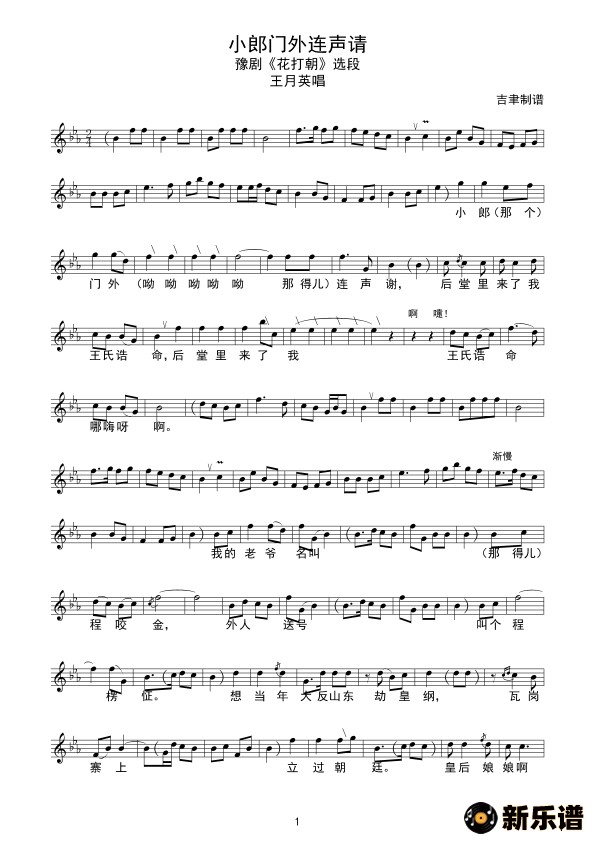 演唱的小郎门外连声请(线谱)歌词,小郎门外连声请(线谱)简谱.